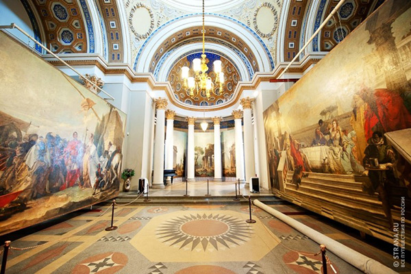 Bến trái nhà thờ là cung điện xây theo phong cách cổ điển – ba tầng với ban công, sân thượng và mái vòm, được trang hoàng rất lộng lẫy bên trong.