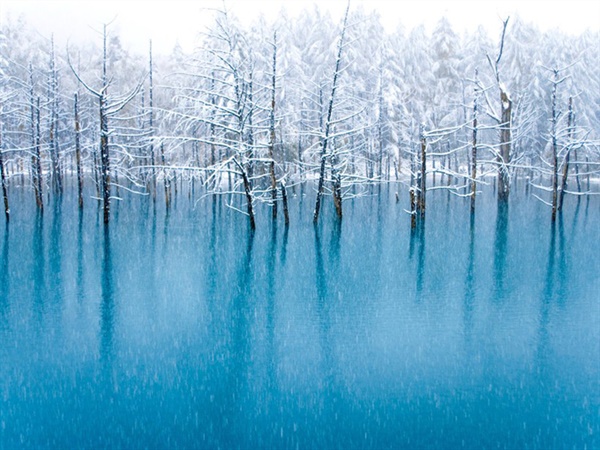 Blue Pond nằm trên bờ sông Bieigawa gần thị trấn Biei trên đảo Hokkaido của Nhật Bản. Vốn đã là điểm du lịch nổi tiếng, gần đây, Blue Pond còn được biết nhiều hơn khi Apple quyết định chọn hình ảnh nơi đây làm hình nền cho một phần của hệ điều hành mới nhất.