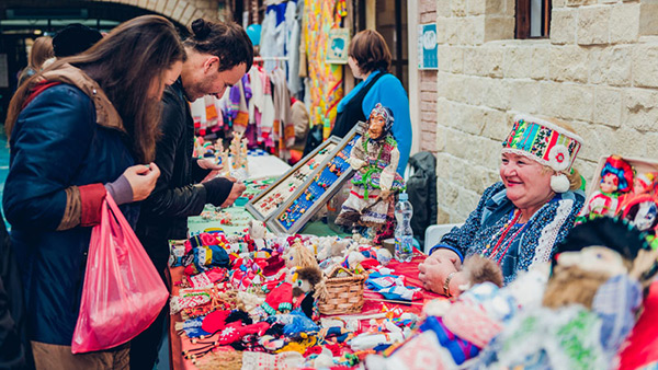 Khu phố đi bộ với nhiều quầy hàng bán đồ thủ công của mỗi dân tộc