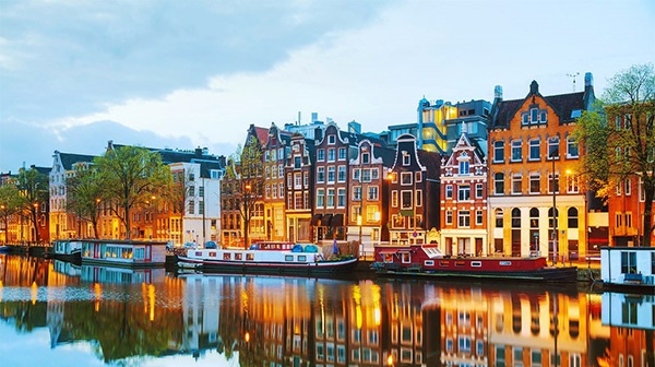 Đoàn khởi hành đến thủ đô Amsterdam xinh đẹp của vương quốc Hà Lan, nổi tiếng với hàng trăm con kênh, hàng ngàn ngôi nhà cổ kính được xây dựng từ thế kỉ 17 trên 90 hòn đảo được nối kết bởi hàng trăm chiếc cầu.