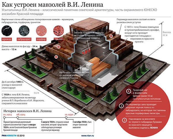 Việc bảo vệ thi hài Lênin là công việc hết sức phức tạp, thí dụ việc duy trì nhiệt độ trong phòng đặt quan tài Lênin luôn luôn phải ở 16 độ C với sai số không được vượt quá 0,7 độ C. Để thực hiện công việc này luôn phải có 12 kỹ sư, bác sĩ chuyên ngành làm việc trong mỗi ca trực, và các ca phải trực liên tục 24/24 giờ. Còn kỹ thuật chống sự hoại tử thi hài thì được coi là một trong những bí mật trọng điểm của quốc gia.