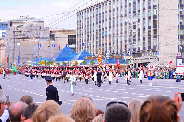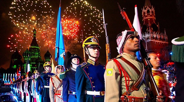 Liên hoan Quân nhạc quốc tế “Tháp Spasskaya” tại thủ đô Moscow là sự kết hợp của âm nhạc quân đội, dân gian, cổ điển và các loại nhạc phổ biến khác, cùng màn diễu hành của các đội quân danh dự, các đoàn quân nhạc quốc tế đến từ các nước Anh, Pháp, Armenia, Trung Quốc, Thổ Nhĩ Kỳ, Scotland, Hy Lạp, Nhật Bản, Tây Ban Nha, Belarus, Kazhastan, Mexico, Nhật Bản, Mông Cổ,...