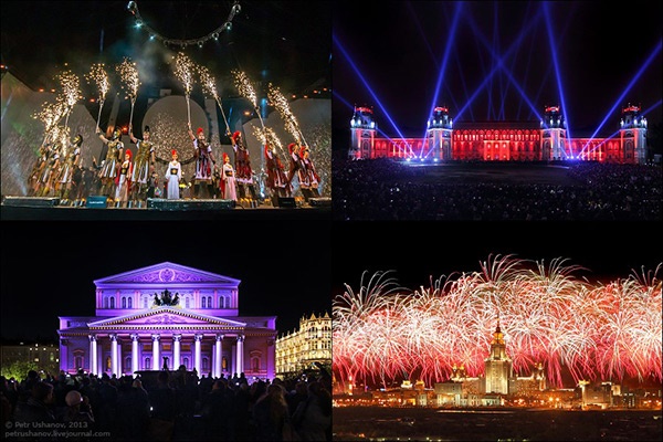 Hàng năm các công trình kiến trúc nổi tiếng nhất của thành phố sẽ được chọn làm nơi diễn ra sự kiện chính như: nhà hát lớn Bolshoi, cung điện Kremli, toàn nhà trường đại học tổng hợp MGU, tháp truyền hình Ostankino, tòa nhà Bộ Quốc phòng,…..với những màn biểu diễn sắp đặt ánh sáng không gian và âm thanh.