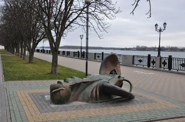 (Tượng “Con tôm” bên bờ sông mang tên Ushakov)