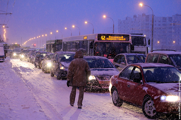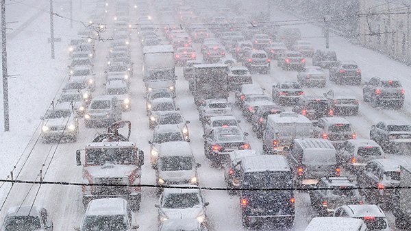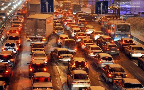 Đường phố Moscow tắc nghẽn vào những ngày tuyết rơi cuối năm