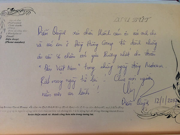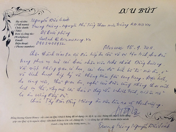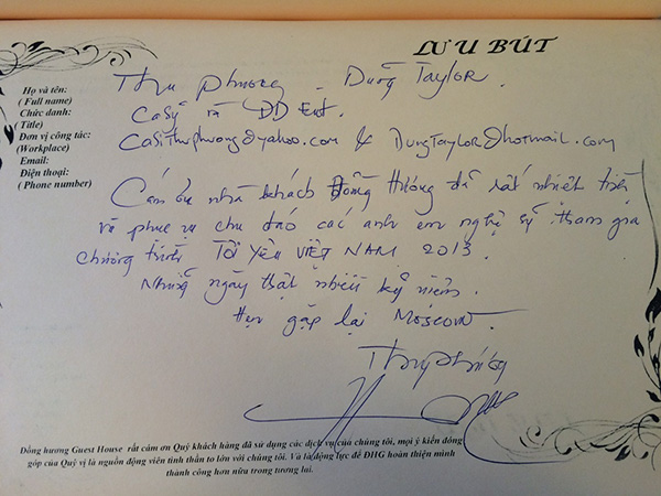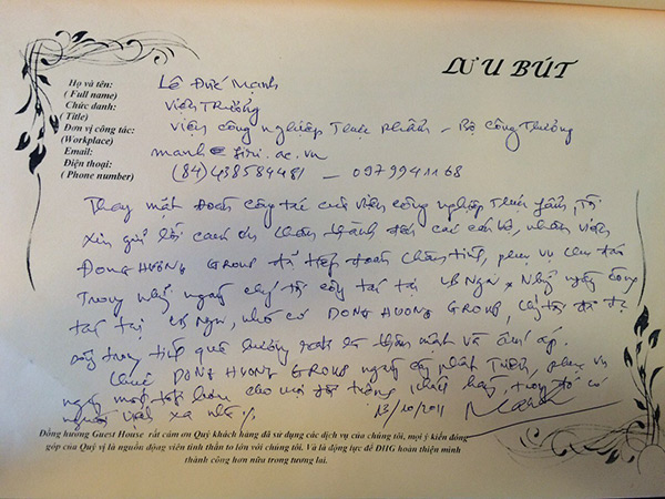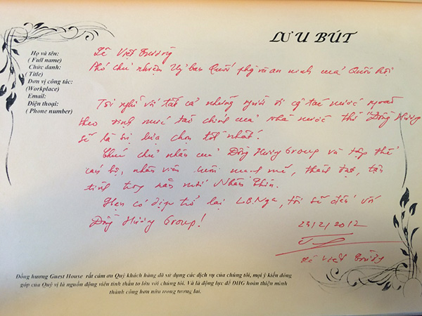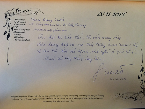 Một số dòng lưu bút, tình cảm của các vị khách dành cho NHÀ KHÁCH ĐỒNG HƯƠNG: