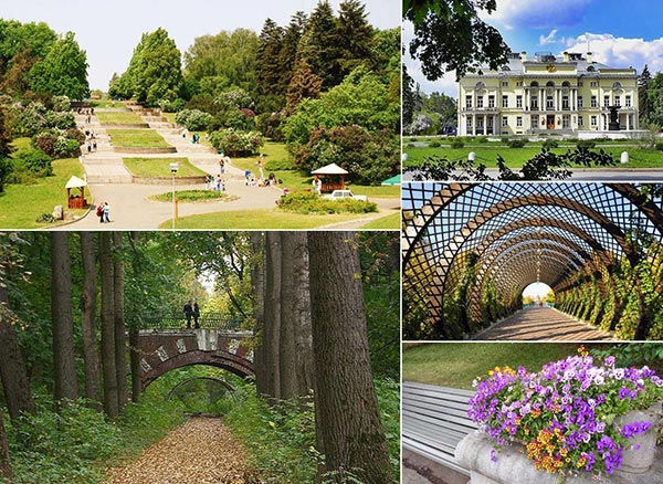 Cảnh quan trong công viên vô cùng đẹp, được bao phủ bởi các rừng cây tạo ra không gian thoáng đãng, không khí trong lành mát mẻ, dễ chịu, có hồ nhân tạo, đài phun nước và các khu vực trồng hoa nằm xen kẽ bởi các họa tiết nhiều màu sắc. Phía bên trong rừng là tổ hợp kiến trúc các cung điện cổ.