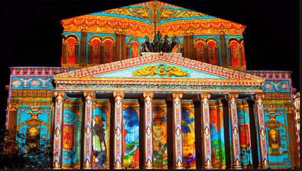 Từ 23 -27/9/217 vào lúc 19h30-23h00 tại nhà hát lớn Bolshoi sẽ diễn ra màn trình diễn ánh sáng kể về một câu chuyện tình yêu lãng mạn trên mặt chính diện của toà nhà, ngoài ra tại đây cũng tổ chức cuộc thi ARTVISION mang tới cho người xem những tác phẩm mới về nghệ thuật ánh sáng tại nhà hát lớn Bolshoi với thể loại cổ điển và thể loại hiện đại tại nhà hát trẻ (Малый теятр).