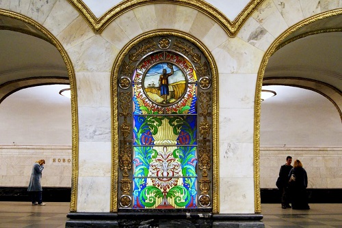 7. Ga Ploshchad Revolyutsii: Đây là một trong những ga nổi tiếng nhất và là điểm dừng chân tốt nhất để ghé thăm Quảng trường Đỏ (biểu tượng của nước Nga). Điểm ấn tượng nhất của ga Ploshchad Revolyutsii là các tác phẩm điêu khắc tráng lệ bằng đồng. Các bức tượng mô tả những tầng lớp người dân Liên Xô với tổng cộng 76 tác phẩm. Trong đó, một số bức điêu khắc được cho là mang đến may mắn. Vì là một ga tàu nổi tiếng, gần trung tâm và các địa điểm tham quan thú vị khác nên khẳng định du khách đến với Ploshchad Revolyutsii sẽ rất đông đúc. Nếu định ghé thăm nơi này, bạn nên tránh đi vào giờ cao điểm. Ngoài ra, đi tàu điện ngầm khi đông người, bạn cần bảo quản đồ đạc cẩn thận, cất các đồ vật có giá trị ở túi trong hoặc nơi an toàn, tránh bị móc túi.