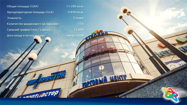 Diện tích trung tâm thương mại (GBA/GLA): 13280/ 9850 m2