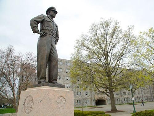 Ở cách đó một khoảng là tượng của Tổng thống Eisenhower - người đã từng theo học tại Học viện này từ năm 1911 đến 1915.