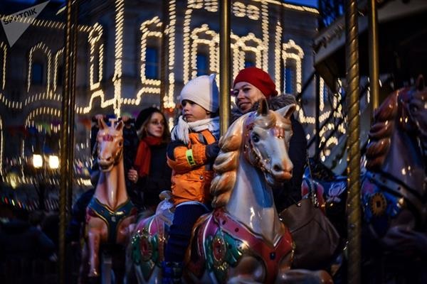 Hội chợ Giáng sinh và năm mới ở Nga chìm ngập trong ánh sáng rực rỡ và không khí nhộn nhịp, vui tươi.
