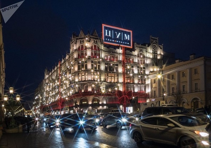 Trang trí đón Noel và năm mới bên trong đại siêu thị GUM ở trung tâm thủ đô Moscow (nằm ngay cạnh Quảng trường Đỏ).