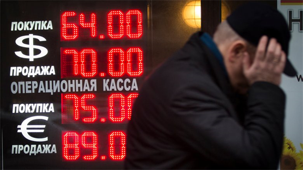 Kết quả của sự suy giảm nhanh chóng giá trị của đồng rúp Nga là do giá dầu giảm và các lệnh trừng phạt của phương Tây vì Nga sáp nhập bán đảo Crimea.