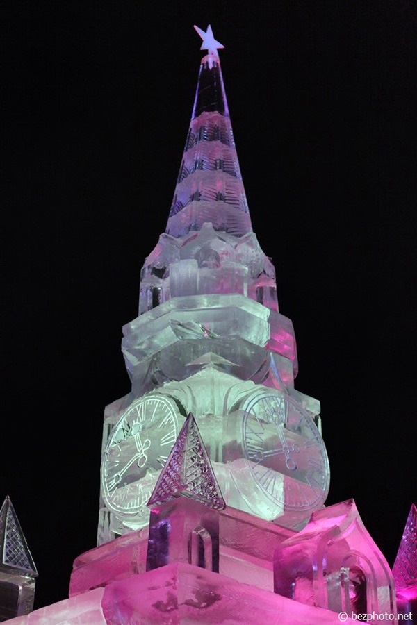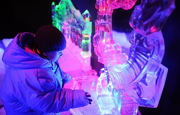 Các tác phẩm điêu khắc bằng băng rực sáng nhờ ánh đèn màu