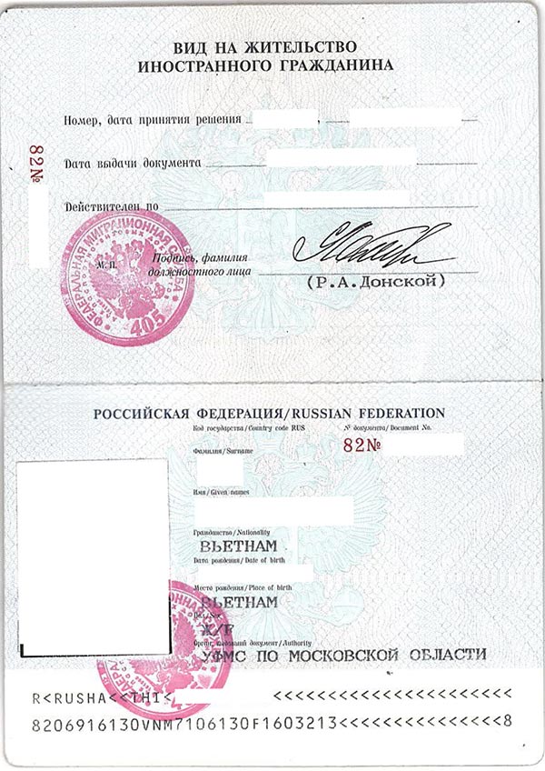 Dấu cấp VID trong hộ chiếu. Hiện tại để nhận quyền định cư lâu dài, bà con thường gọi nôm na là thẻ định cư - VID (вид на жительство) thì có nhiều con đường khác nhau. Ví dụ trẻ em sinh ra tại thời điểm mà bố (hoặc mẹ) hoặc cả bố và mẹ, đã có VID (вид на жительство) thì đứa trẻ có thể nhận được VID (вид на жительство) ngay. Hoặc nếu ai có quyền lao động 3 năm thì có thể nộp đơn trong vòng 3 tháng để nhận VID (вид на жительство). Hai trường hợp này không phải qua giai đoạn định cư tạm thời 3 năm.