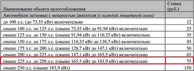 Xe của chúng ta sẽ được tính là 75 rub/mã lực.