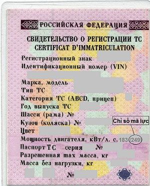 Ví dụ: khi các bạn đăng ký xe ô tô thì bạn sẽ nhận được tờ đăng ký xe, trong đó có mục số 10 (theo hình bên dưới) có ghi mã lực (лс.) (249).