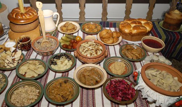 - Kutya, là một món tráng miệng làm từ ngũ cốc (lúa mì…), nho khô, mật ong và hạt anh túc. Ngũ cốc tượng trưng cho hy vọng, mật ong: hạnh phúc, hạt cây: thái bình. Món Kutya được dùng trong cùng một chiếc đĩa, để tượng trưng cho sự đoàn kết hòa hợp.