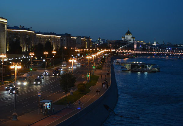 Các bạn có thể đi dạo thoải mái dọc đường bờ sông. Ở đây không đông người và có rất nhiều cây xanh. Nếu đi qua cầu đi bộ Puskin, bạn sẽ dễ dàng đi đến công viên Gorky và Vườn không buồn (Нескучный сад).