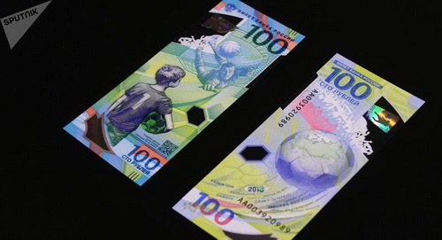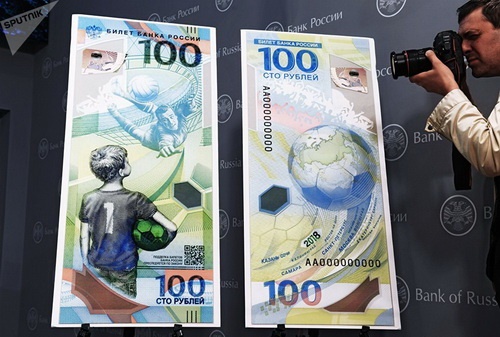 Hồi tháng 11 năm ngoái Ngân hàng trung ương Nga công bố sẽ cho in loại tiền giấy đặc biệt nhân dịp Giải vô địch bóng đá thế giới. Hè năm ngoái Ngân hàng trung ương Nga cho sản xuất bốn loại đồng tiền xu bằng bạc mệnh giá 3 rúp và đồng xu lưu niệm làm từ kim loại bình thường mệnh giá 25 rúp, với hai loại hình thiết kế thông dụng và đặc biệt.