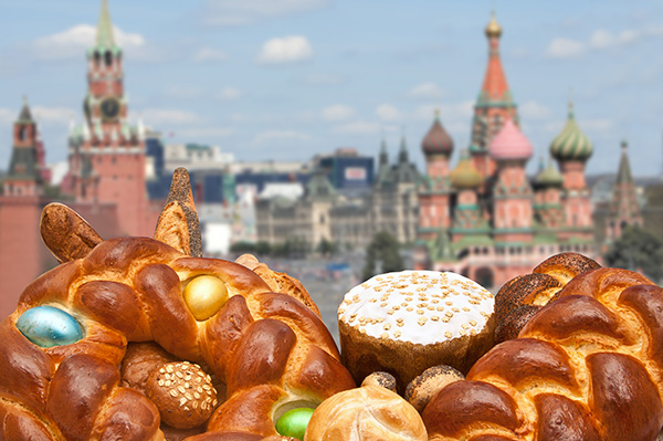 Cũng như các nước theo Đạo Ky-tô khác, ở Nga cũng có ngày lễ Phục Sinh. Người ta sẽ làm loại bánh mỳ ngọt đặc biệt, có hình tròn (gọi là bánh Phục Sinh) và được bày bán ở hầu hết các hiệu bánh mỳ trong dịp lễ. Ngoài ra, người ta còn làm cả bánh Paskha (một loại bánh làm bằng hỗn hợp sữa có đường, nho khô và bơ) và những quả trứng được nhuộm nhiều màu sắc sặc sỡ. Trứng đỏ được coi là biểu tượng của lễ Phục Sinh. Trứng Phục Sinh có nhiều mục đích, nó là món quà truyền thống để tặng bạn bè và người thân thay lời chúc mừng trong lễ Phục Sinh. Có một câu thành ngữ nói rằng, nếu bạn rửa mặt bằng nước có cả trứng phục sinh, bạn sẽ luôn giàu có và xinh đẹp. Lễ Phục Sinh cũng là dịp để mọi người đi thǎm hỏi bà con, họ hàng.