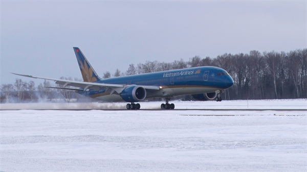 Máy bay Boeing 787 của Vietnam Airlines hạ cánh tại sân bay Domodedovo (Moscow).