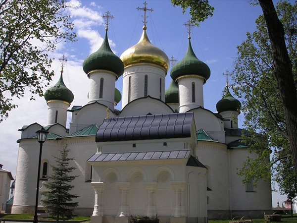 Công trình cổ kính nhất của thành phố là tòa thành Kremlin Suzdal. Toàn bộ lãnh thổ của thành là tổ hợp bảo tồn lớn, với nhà thờ bằng gỗ, tháp chuông đồng hồ và các tòa dinh thự là nơi sinh sống của các quận vương chúa tể Suzdal. Nhà thờ chính của Kremlin Suzdal là Giáo đường Giáng Sinh. Mặt ngoài ngôi đền thờ trang trí bằng đá trắng chạm trổ cầu kỳ. Bên trong lưu giữ những bức bích họa cổ từ thế kỷ 13. Nhưng kiệt tác thực sự là “Cổng Vàng” – tượng đài độc đáo về nghệ thuật trần thiết - thủ công của xứ Nga xưa. Khi tạo ra những chiếc cổng hoành tráng uy nghi này, các nghệ nhân tiền bối xưa kia đã sử dụng kỹ thuật "mạ vàng lửa" trong đó đồng đánh bóng được phủ đều một lớp vàng mỏng lộng lẫy.