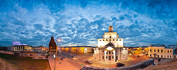 Chuyến du ngọan nhỏ của chúng ta quanh Suzdal tới đây kết thúc. Đã đến lúc khởi hành đến “thành phố của những giáo đường đá trắng" - Vladimir (Владимир). Vladimir cách Suzdal 30 km. Thành phố ngự trị trên bờ cao của sông Klyazma (Клязма), từ đó mở ra bức tranh toàn cảnh tuyệt vời với những đường cong uốn lượn của dòng sông, màu biếc xanh của cánh rừng trên đường chân trời, và những căn nhà xinh như đồ chơi. Có giả thuyết rằng thành phố được tạo dựng vào năm 1108 để bảo vệ biên thùy phía nam của vương phủ Rostov - Suzdal. Tuy nhiên, nửa thế kỷ sau Vladimir đã trở thành thủ phủ của miền Đông - Bắc xứ Nga. Yếu tố này có ý nghĩa to lớn trong việc xây dựng đô thị. Vị quận vương Nga muốn làm cho Vladimir đẹp hơn cả thành Kiev. Ý nguyện đó đã thành hiện thực một phần. Đáng tiếc là từ thời đó đến nay chỉ còn giữ lại được nhà thờ Uspenski (Успенский) và "Cổng Vàng”.